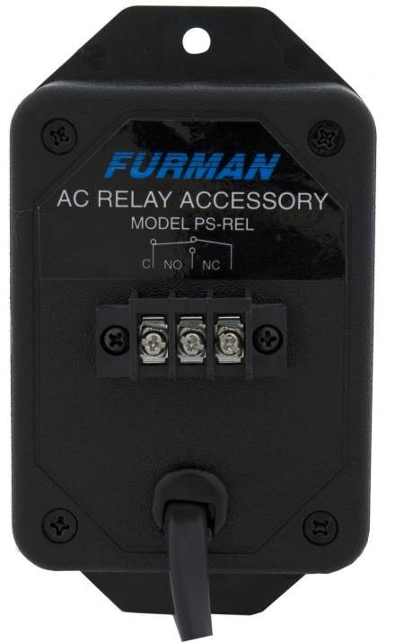 Instead of being operated manually like the RS-1, PS-REL has a relay that detects the presence of AC power. In response, closes relay contacts that are wired to a terminal strip. It may be used with any of the Furman products mentioned in connection with the RS-1.