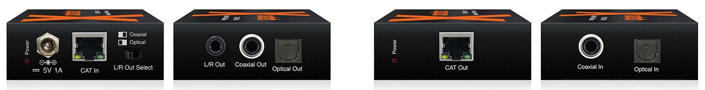 Extend optical and coaxial digital audio signals up to distances of 300m over a single CAT cable